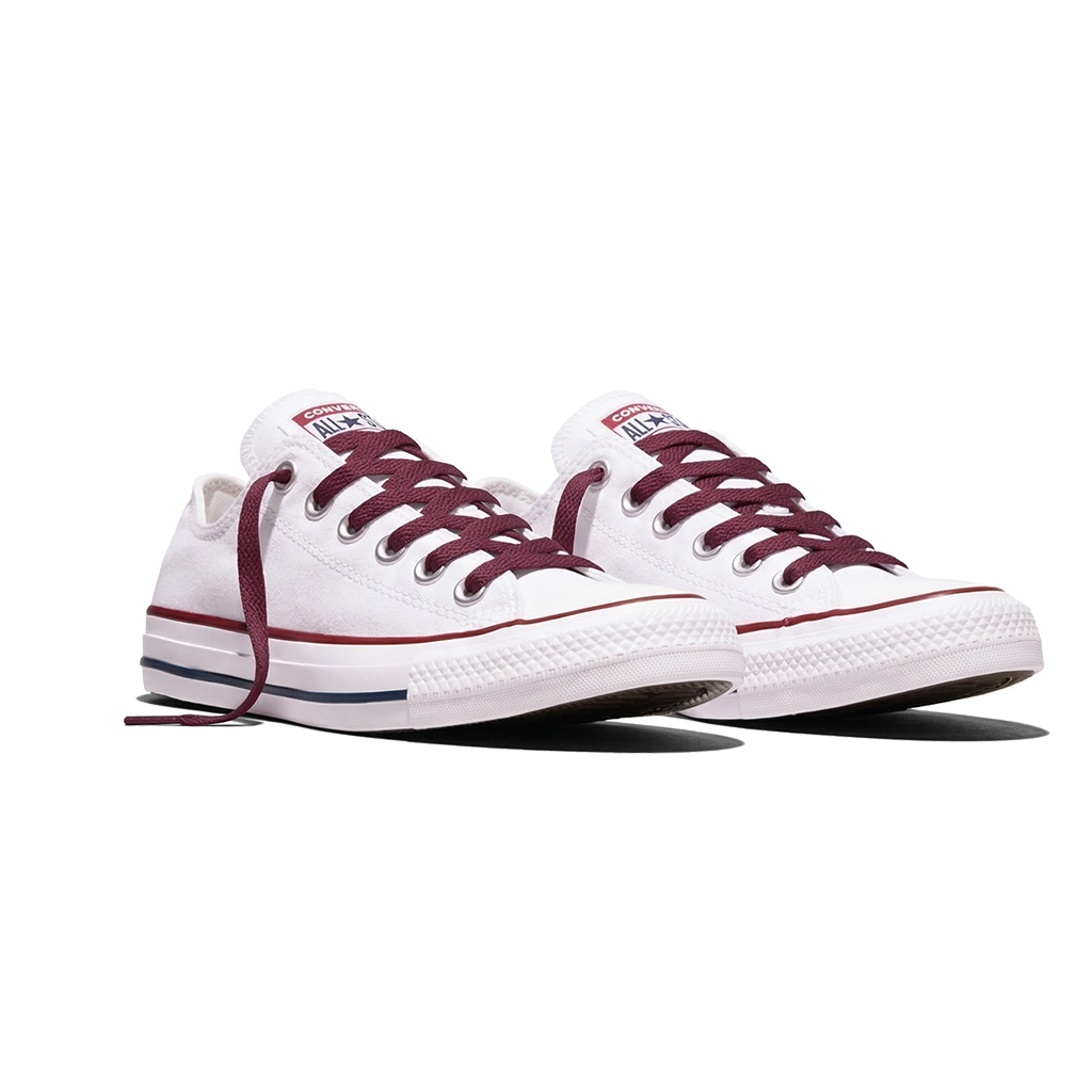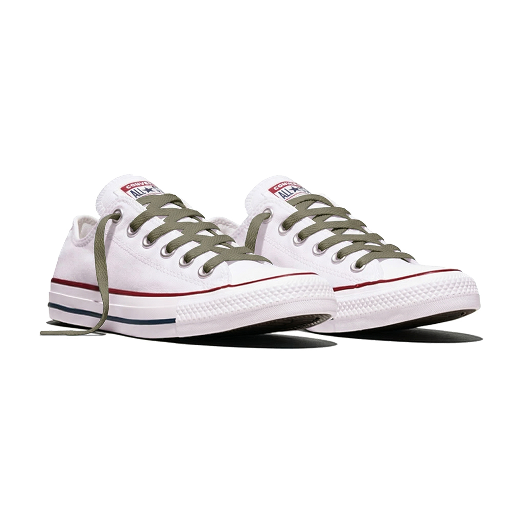 La longueur de référence pour la Chuck Taylor Low (6 paires d'œillets) est de 114 cm. Sur meslacets.fr, nous proposons ce modèle en 110 cm et en 125 cm car les deux fonctionnent très bien. Le 110 cm donnera un nœud compact et soigné, proche du format d'origine. Le 125 cm permettra un nœud plus volumineux et visible, dans le style "schoolboy" très populaire sur ce modèle.