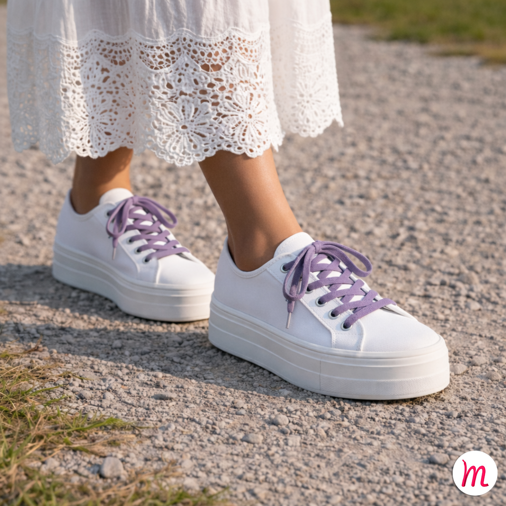 Notre gamme de lacets plats et fins de largeur 4 mm et de longueur 70 cm est déclinée en 20 coloris pour s'adapter à toutes vos envies de couleurs : blanc neige, gris garenne, marron acajou, noir ébène, bleu airelles, violet iris, vert armée, jaune canaris, rouge passion, bleu turquoise, vert pastourelle, mauve lavande, bleu azur, bleu ciel, gris source, orange mandarine, rose œillet, rose litchy, feuille d'or brillant, et gris argenté brillant.