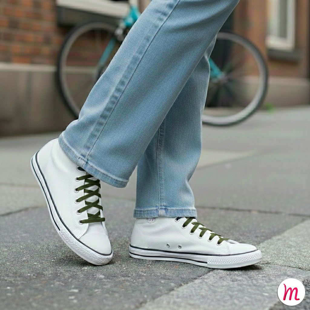 Notre gamme de lacets plats et larges de longueur 90 cm et de largeur 7 mm est déclinée en 30 coloris pour s'adapter à toutes vos envies de couleurs : blanc neige, gris garenne, marron acajou, noir ébène, rouge bourgogne, bleu airelles, vert armée, jaune canaris, orange soucis, rouge passion, bleu turquoise, vert pastourelle, bleu azur, bleu ciel, gris source, rose œillet, rose litchy, beige vent, violet digital, rose fluo, vert fluo, jaune fluo, bleu jeans, feuille d'or brillant, gris argenté brillant, blanc cassé, vert de gris, marron camel, arc-en-ciel, rose pâle satiné, blanc nacré satiné, et noir satiné.